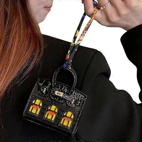 Stylish Coin Purse Keychain in Microfiber Handmade Keychain Small House Bag Shaped Accessories for Urban Men and Women Black Black
