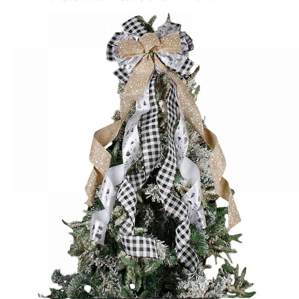 Christmas Tree Topper Bow, 43 x 12 Inch Artificial Xmas Tree Flower Decor, compatible with most trees, for Family, Wedding, Party, Indoor Outdoor