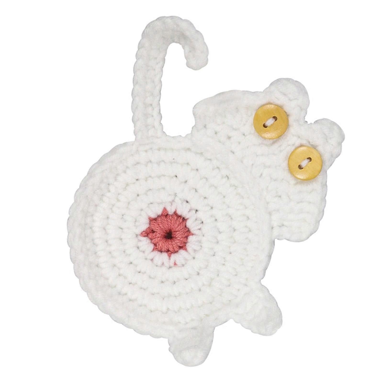 Butt Funny Drink Mat Crochet Mat Absorbent Mat Suitable For Home Office Decoration Gift Features: NO BUTTS ABOUT IT: These are PAW-SOME and we GUARANTEE you will these unique kitties. Just be sure to name them when you get them. Made with all new & unwashed materials! Hand crochet in a , free & pet studio. EASY TO CLEAN: Hand wash with warm water, these cats don't mind getting wet at all. There could be slight differences from the pictures in color and shape since I had crochet each item . Each Butt is approximately 15cm wide + the tail & little legs! Add some sunshine to someones day with this special gift Butt . Any crazy lover will appreciate these. Product Description: 1X Product size: 15 * 10cm/5.9 inch * 3.9 inch
