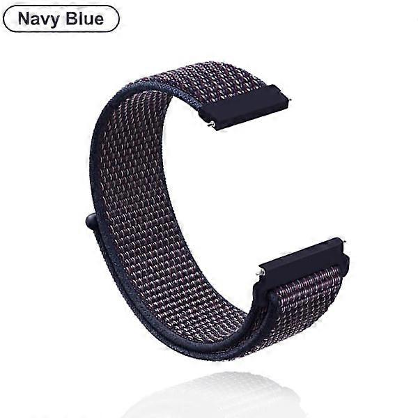 18mm 20mm 22mm Metal Strap compatible with Garmin Vivoactive 3 4 4S, Venu 2 2S SQ, Forerunner 645 - Silicone Loop Nylon Wristband, Navy Blue, 20MM