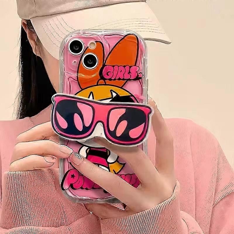 The Powerpuff Girls Glasses Stand Case for iPhone 16 15 14 11 Pro Max 13 12 XR XS X 8 7 6 6S Plus SE 2020 Soft Silicone Cover