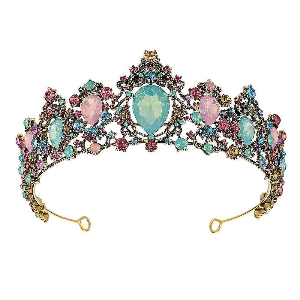 6cm Tall Multi-Color Drip Crystal Tiara Wedding Queen Princess Crown For Women
