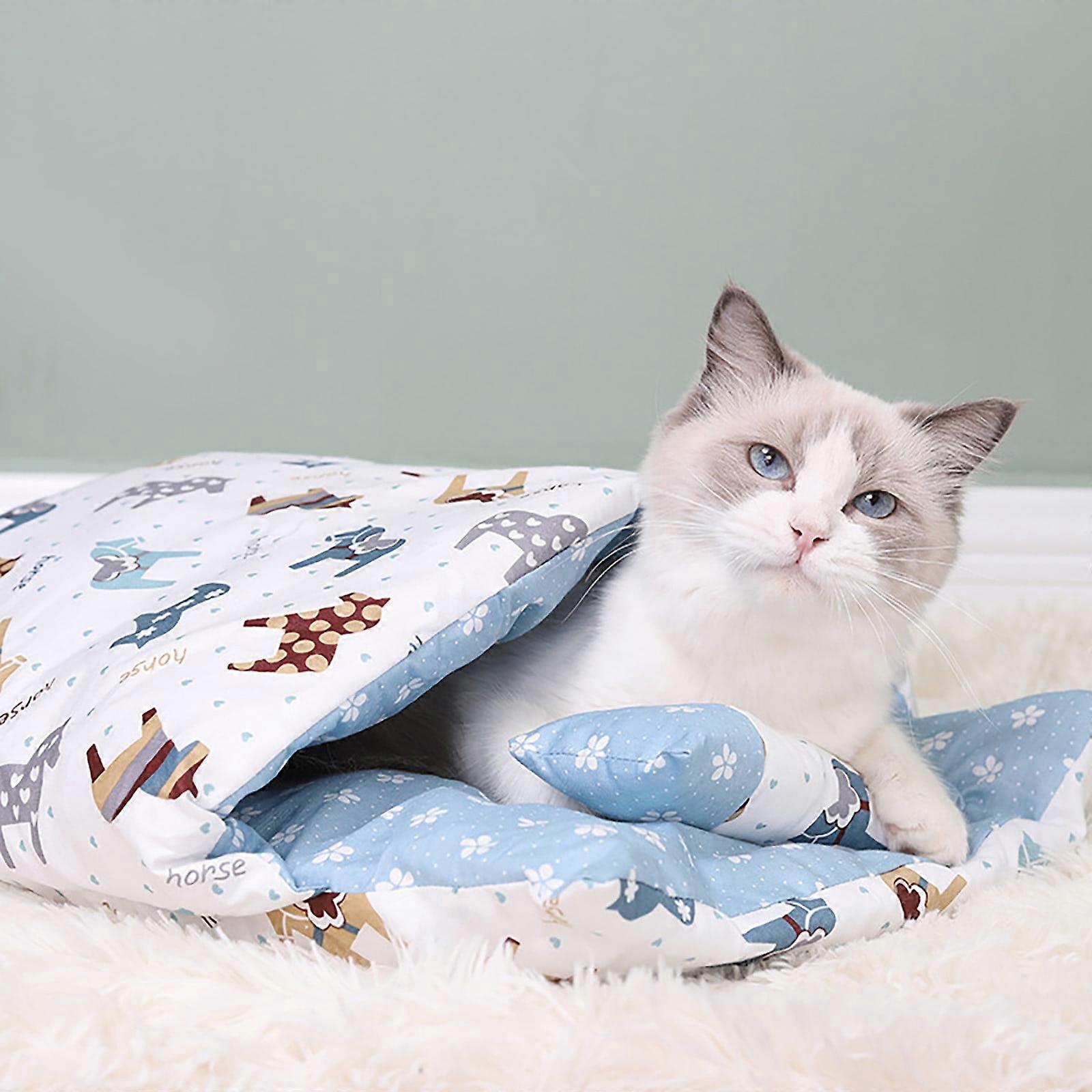 Vikakiooze Cat Sleeping Bag, Covered Cat Bed for Indoor Cats, Small Pet Bed with Removable Pillow, Soft & Cozy, Machine Washable
