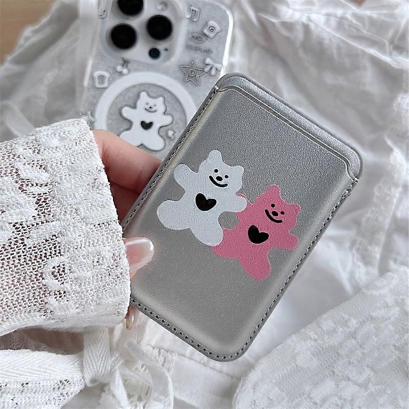 Cartoon Bear Magnetic Accessories For Magsafe Magnetic Wireless Charge Phone Cases For compatible with iPhone 15Pro Case Wallet Card Slot Holder