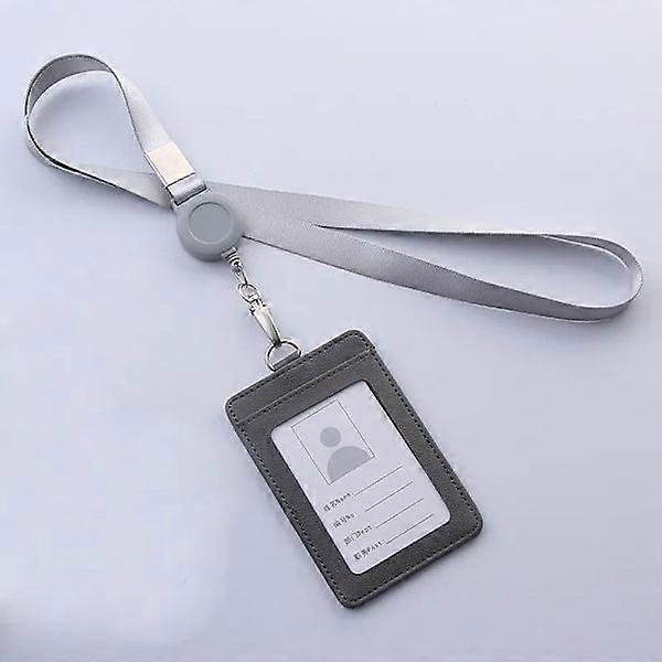 Retractable Lanyards ID Badge Holder Leather Bank Bus Pass Case Cover Men Women Bank Credit Card Holder Strap Card Holder gray(.1490)
