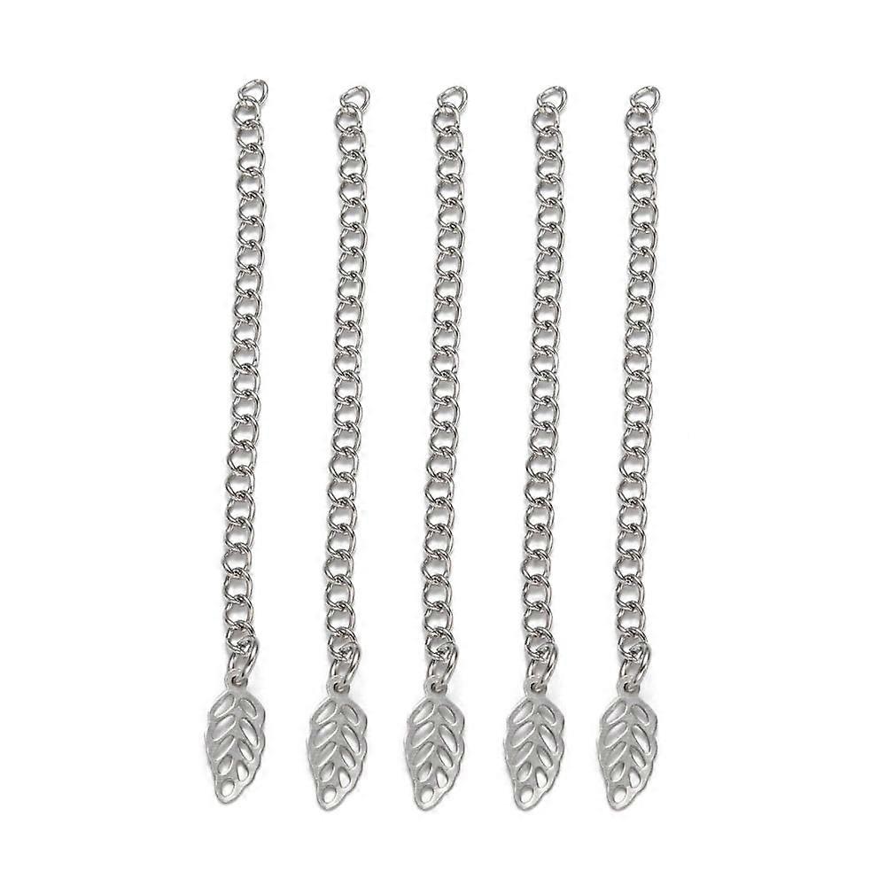 100Strand Tarnish Resistant 304 Stainless Steel Chain Extender with Leaf Pendants Stainless Steel Color 60mm