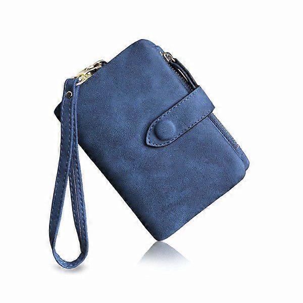 Small Double-Sided Leather Wallet for Women Rfid Bracelet Ladies with Card Slots ID Window Zipper Coin Pocket Blue Blue
