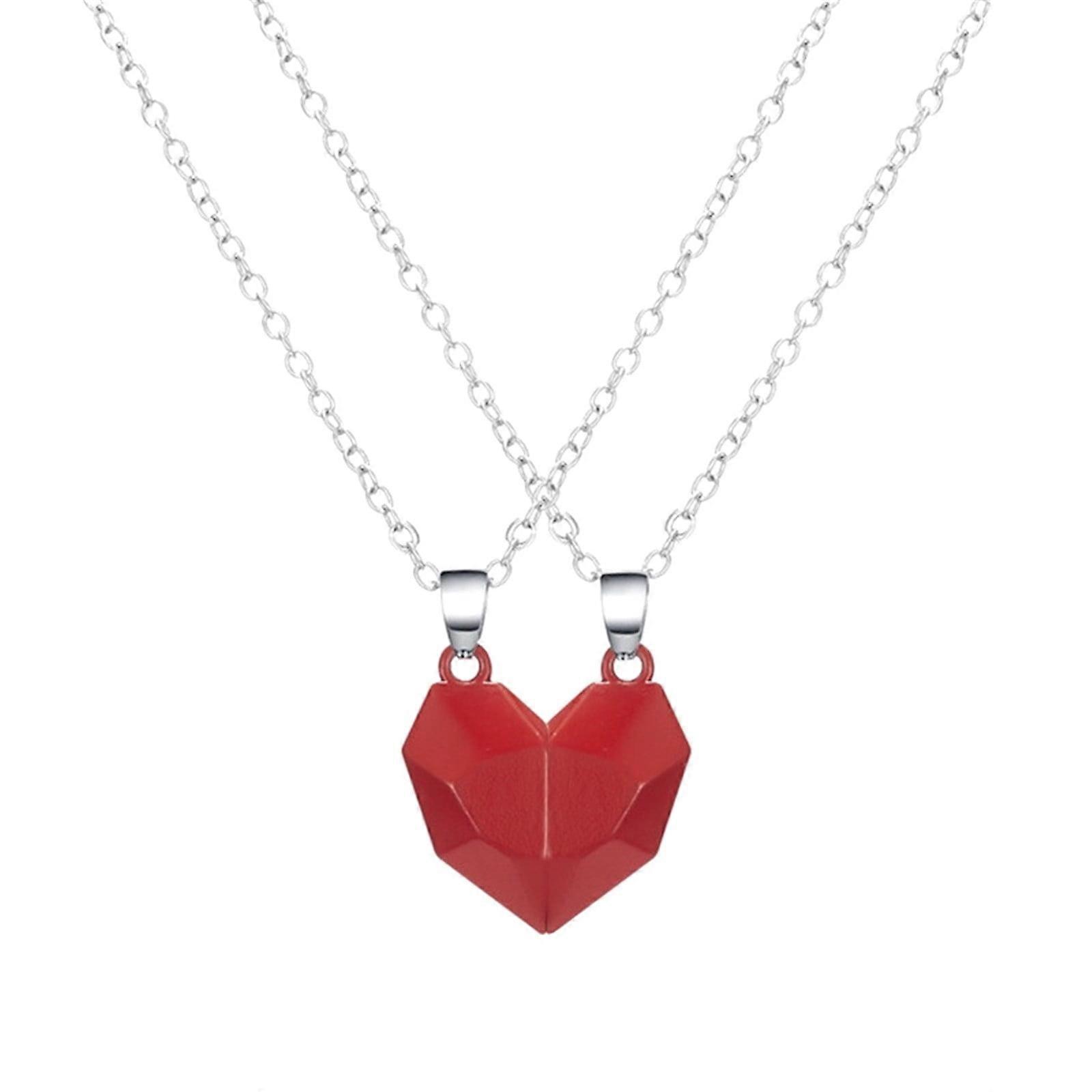 Valentine's Day Gift, Compatible with Couple Necklace Set of 2 Heart-shaped Red Magnet Love Pendants for Mother's Day