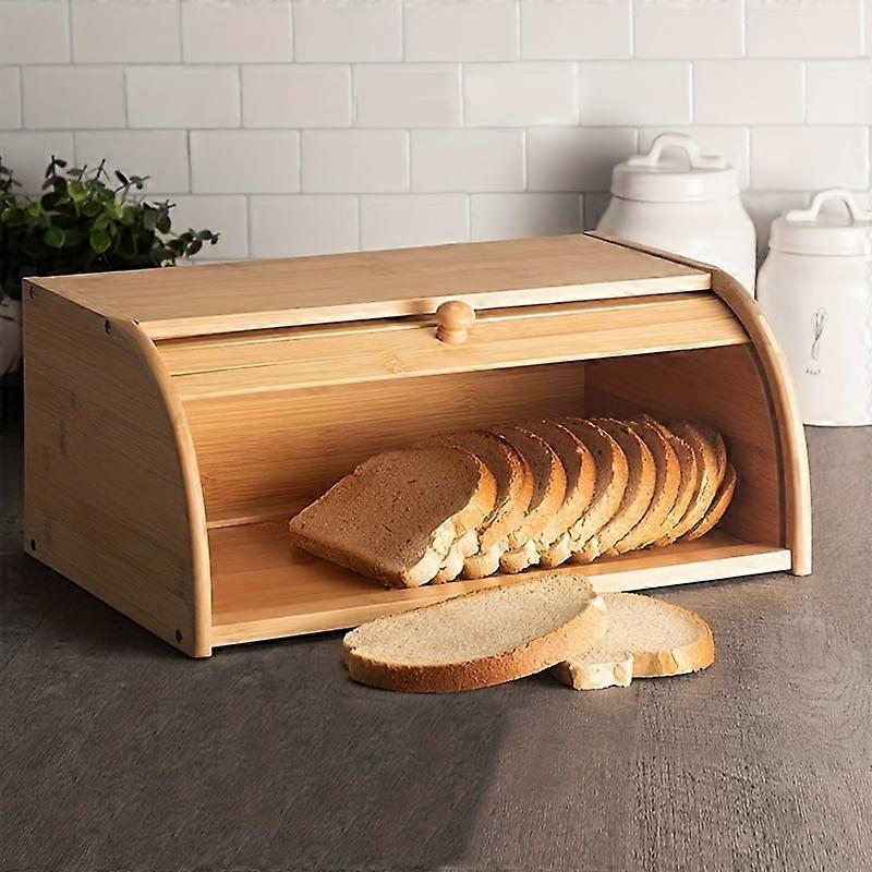 1pc Natural Bamboo Roll Top Bread Box, Cake & Pastry Storage for Countertop, Large Food Storage Box Compatible with Kitchen Use