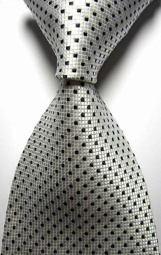 Hot! Classic Checks White Black JACQUARD WOVEN 100% Silk Men's Tie Necktie