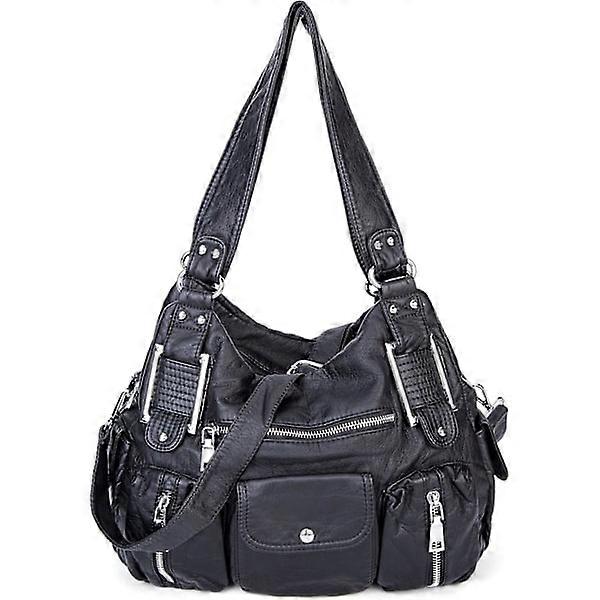 Leather Crossbody Bag Washed Soft Crossbody Handbag Large Capacity Women's Handbag (Black 1)