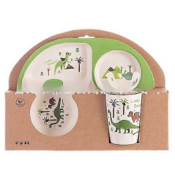 Creative New Bamboo Fiber Children's Dinnerware Set Five Piece Set Preschool Baby Rectangle.Dinosaur Five.piece.set.with.box