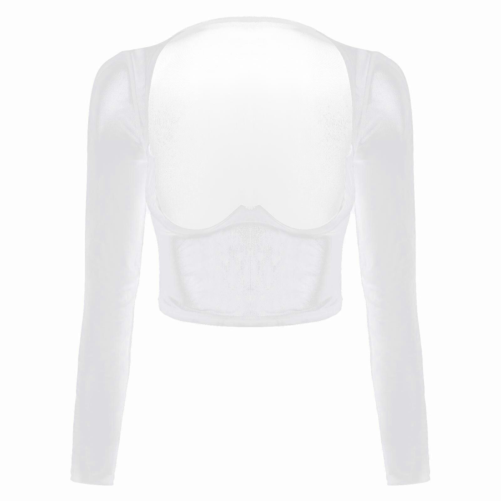 Summer Women's Long Sleeves Blouse Tops Mesh Sheer Casual Loose T Shirt Tops