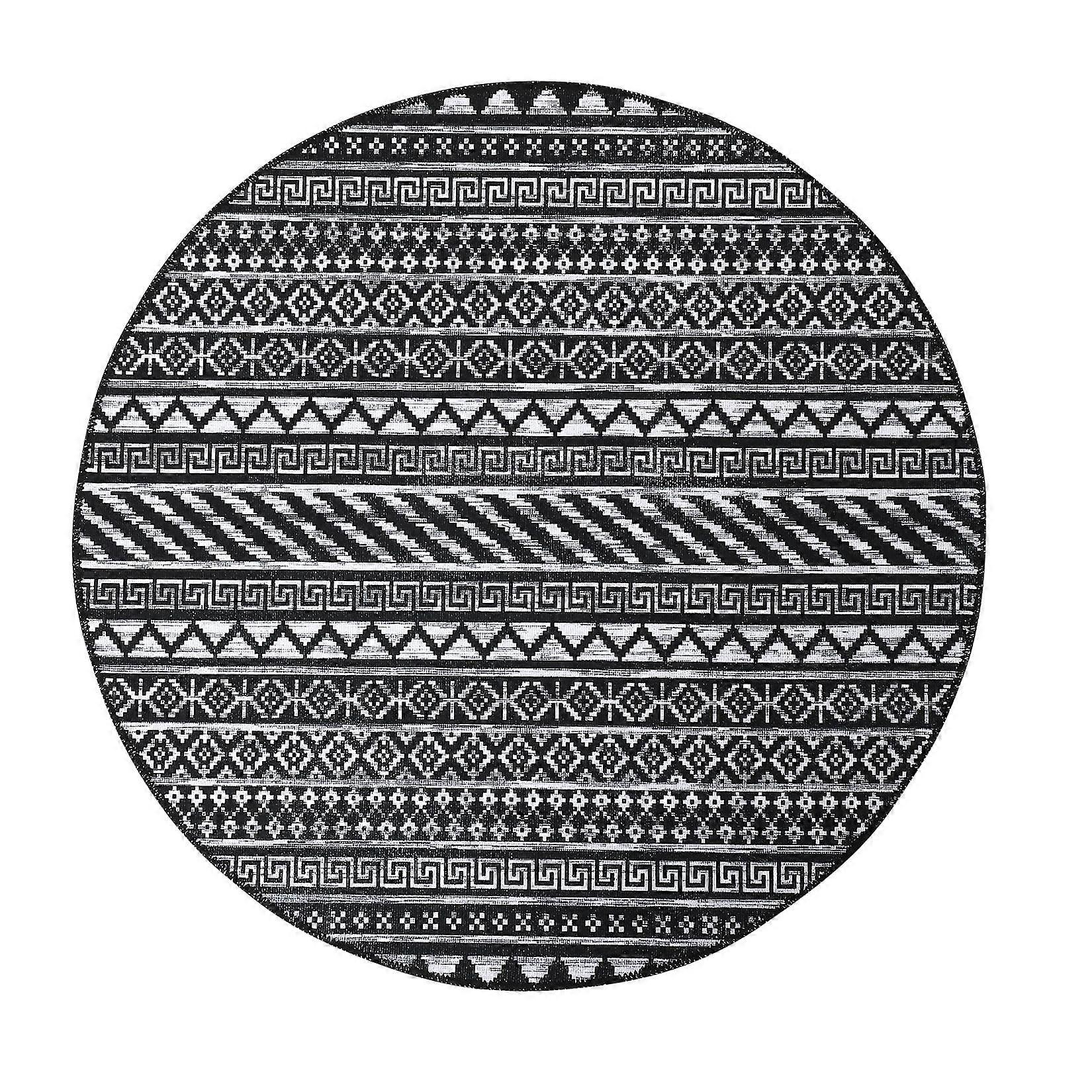 Garvee 3' x 3' Geometric Boho Round Rug Vintage Moroccan Area Rug Machine Washable Circle Rug Low Pile Non-Shed Mat for Playroom, Black