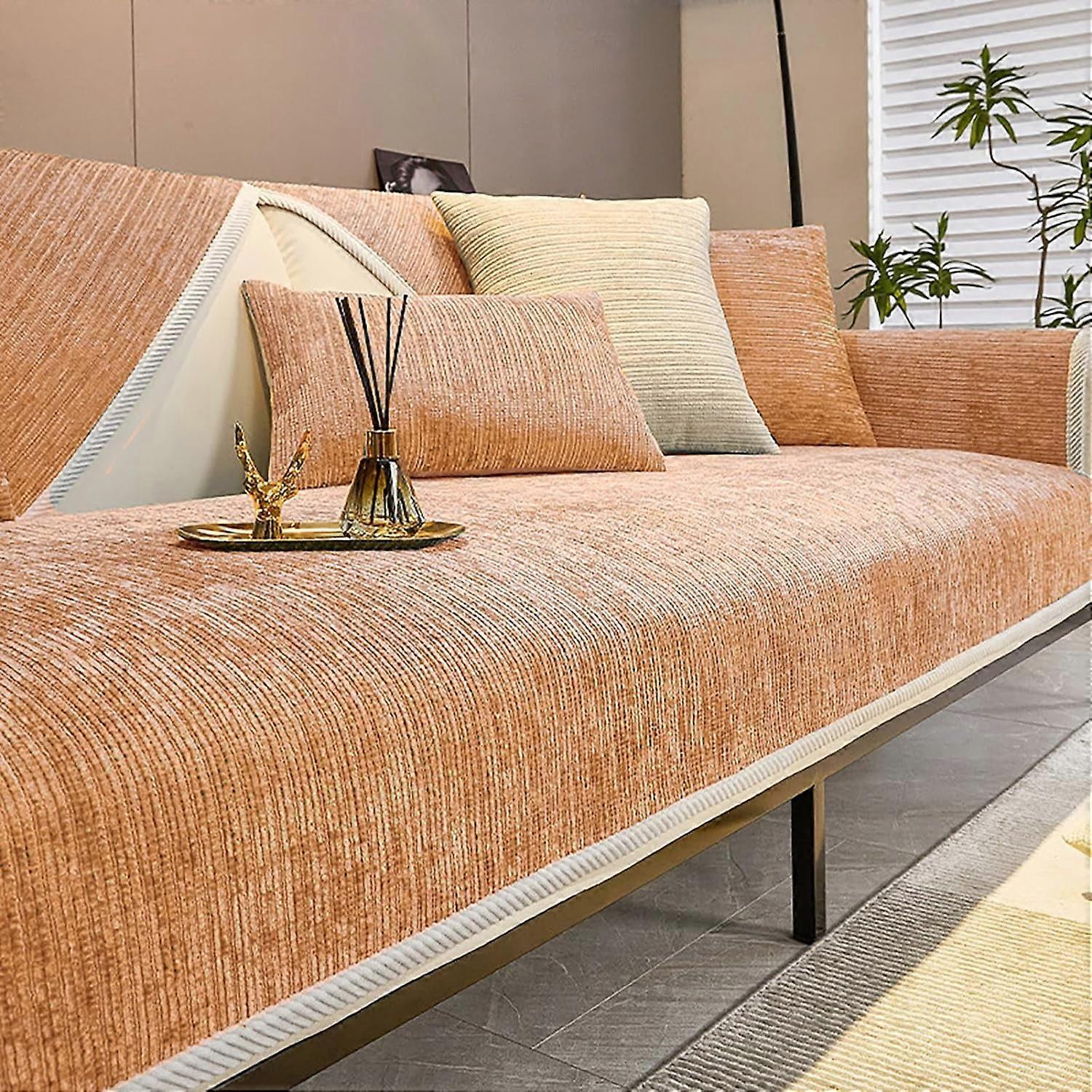 Funny Fuzzy Sofa Cover - Striped Chenille Anti-Scratch Couch Protector, Washable & Anti-Slip with Pillow (Orange, 17.7" * 17.7")