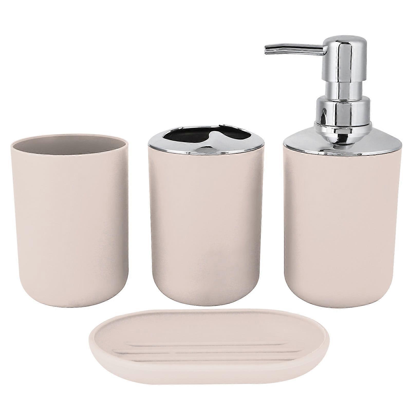 Deluxe 4-Piece Bathroom Accessories Set with Soap Pump, Toothbrush Holder, Tumbler & Soap Dish - Durable Plastic Countertop Set