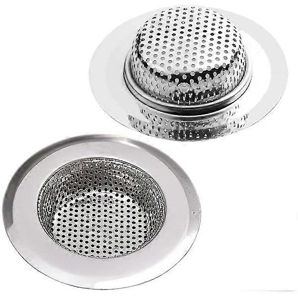 Micro-perforation: 2mm dia holes. Stainless steel construction is reliable and long-lasting. Protects against clogging for years. Effective anti-clogging protection allows liquid to flow seamlessly down the drain while blocking food particles; Standard design: 2.76" total diameter, 1.57" micro-perforated bowl area. It can be perfectly applied to kitchens, bathrooms, floors, drains and various drains; Easy to clean: Easy to wash with warm soapy water to keep the mirror finish impeccable over time. Dishwasher safe; Wide range of applications: Ideal for sink drains and garbage disposals. Stainless steel wire mesh filter for sinks, bathrooms and other water, to prevent debris from falling into the water pipes, dirt only needs to be cleaned and can be used repeatedly. Features: Color: Silver Material: Stainless Steel Plug Diameter: 7cm / 2.76inch 1.57\" micro-perforated bowl area This sink strainer allows water to pass through but not food particles. Ideal for sink drains and waste disposers. Perfect to use for sinks, such as wire and plug. Prevent food debris from falling through. Easy to remove the basket to install, long service life with. Package includes: 2 * Filter Basket