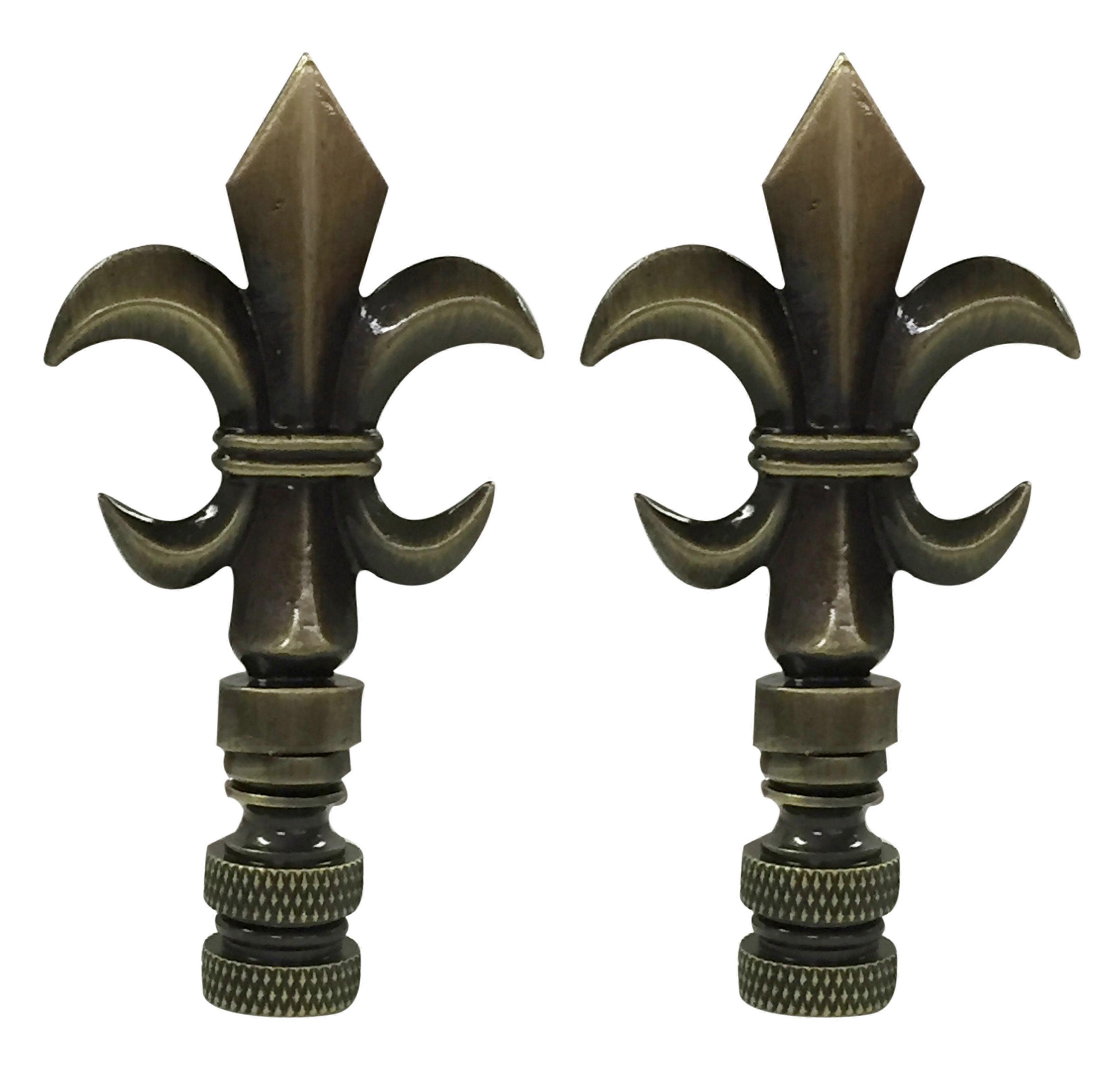 Royal Designs, Inc. Fleur De Lis Lamp Finial for Lamp Shade, F-5005AB-2, Antique Brass, Pack of 2