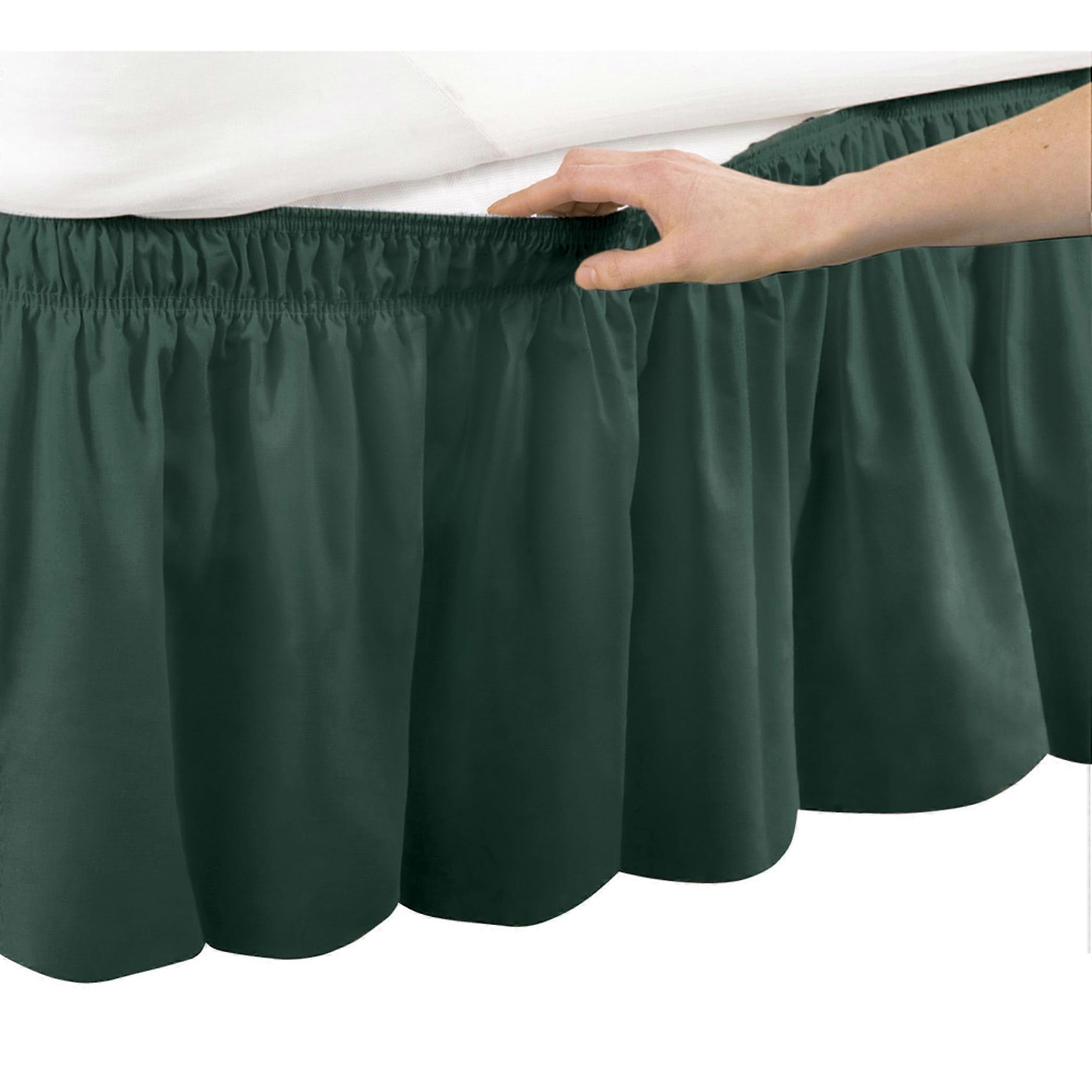 Collections Etc Wrap Around Bed Skirt, Easy Fit Elastic Dust Ruffle, Hunter Green, Queen/King