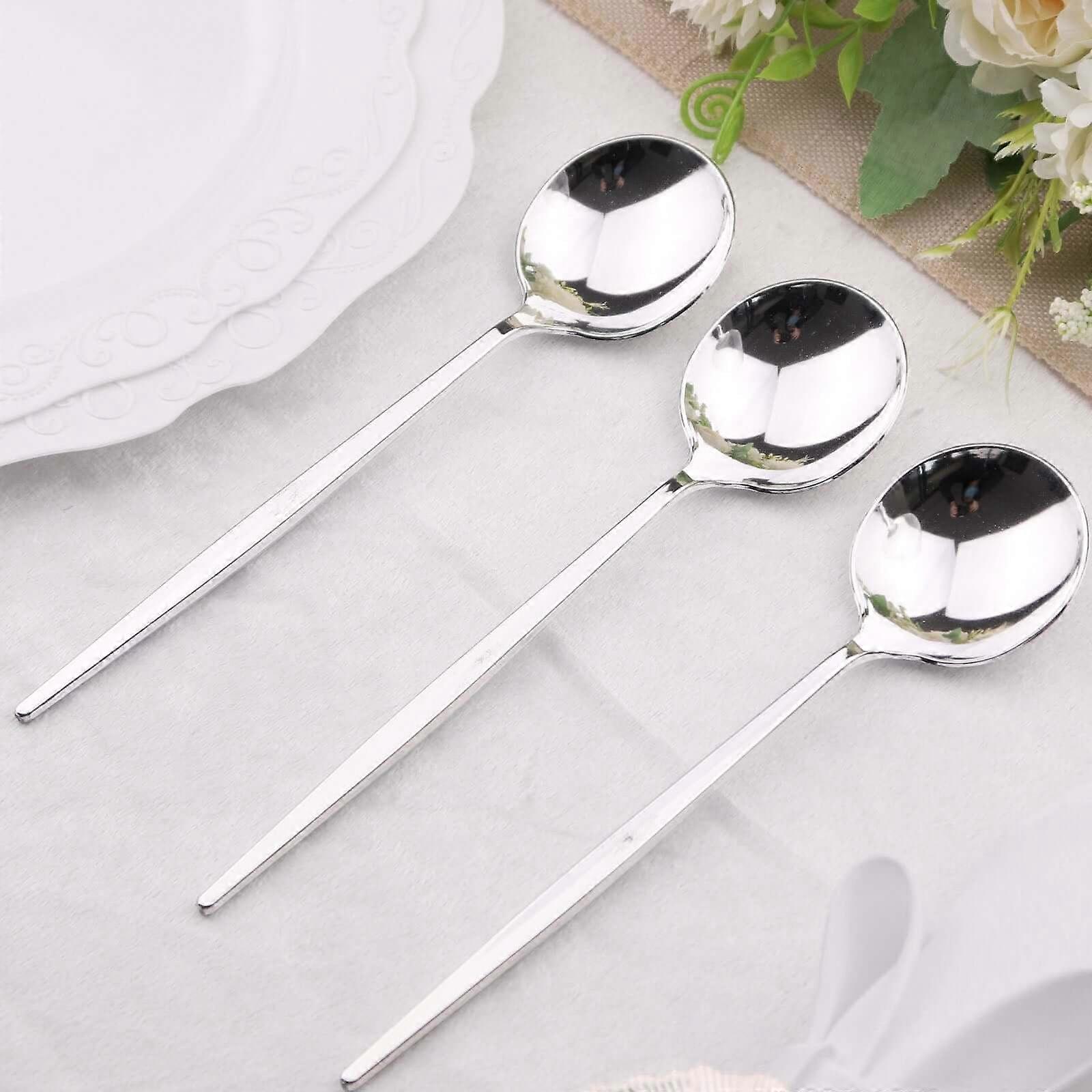 Efavormart 24 Pack | 8" Glossy Silver Heavy Duty Plastic Silverware Spoons Cutlery, Premium Disposable Sleek Flatware