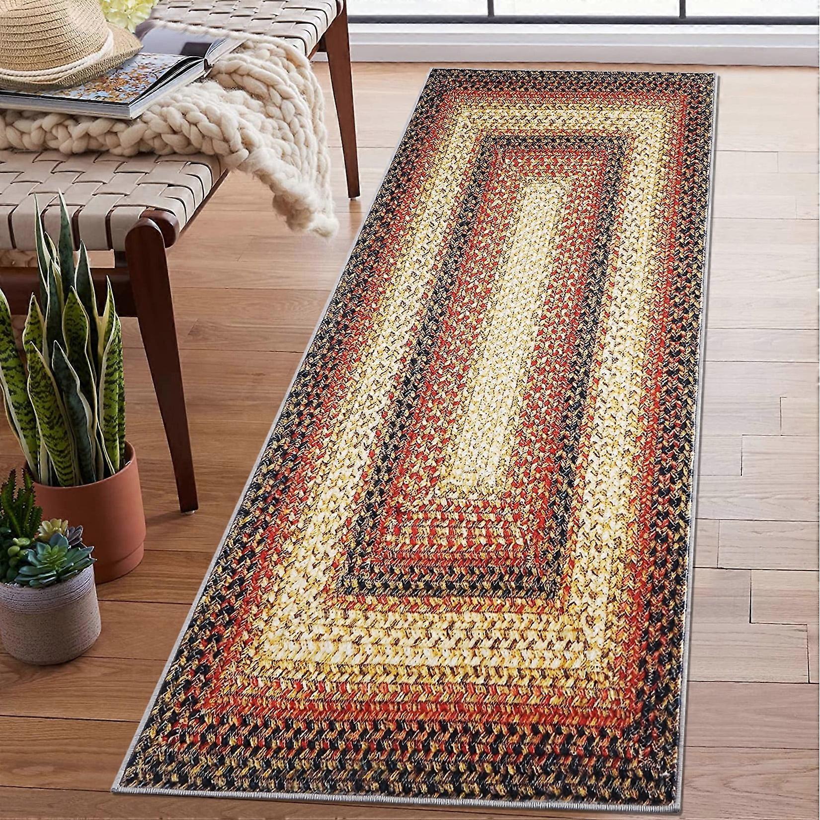 WhizMax Braided Printed Runner Rug 2x6 Washable Boho Runner Rug Modern Rustic Geometric Rug Runner for Laundry Kitchen, Red
