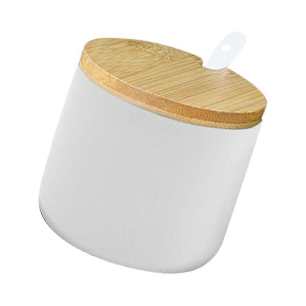 Ceramic Seasoning Jar Pepper Storage Condiment Pot Salt Shaker Candy Container White Wood
