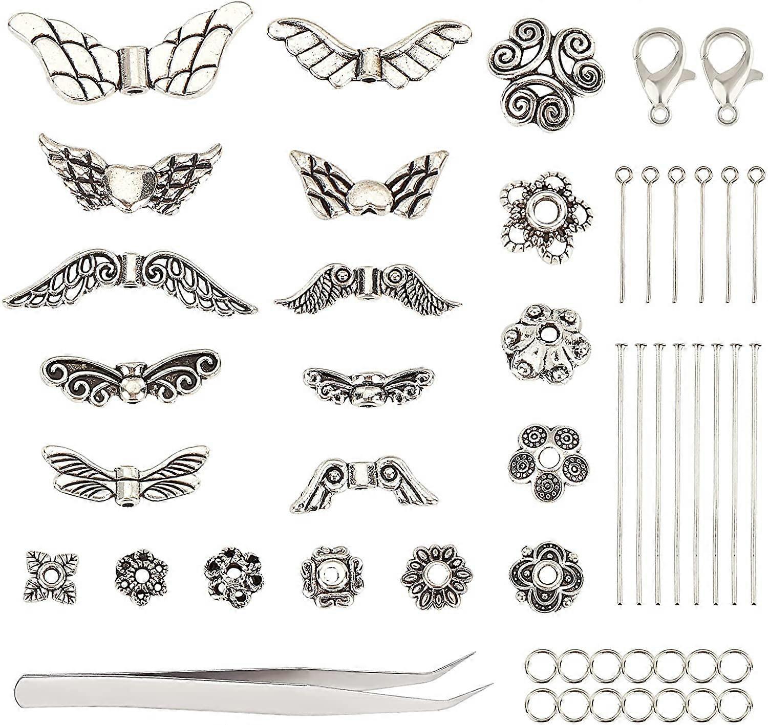 431pcs Angel Craft Set: 100pcs Fairy Wings, Flower Bead Caps, Lobster Clasps, Jump Rings, Eye Pins, Head Pins for Jewelry Making