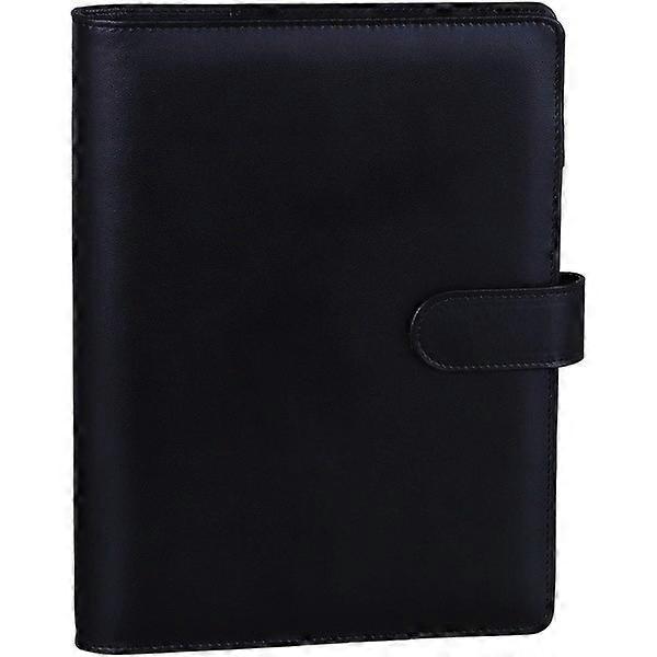 A5 Leather Ring Binder Notebook with Magnetic Closure (Inner Paper Not Included) - Black—PA