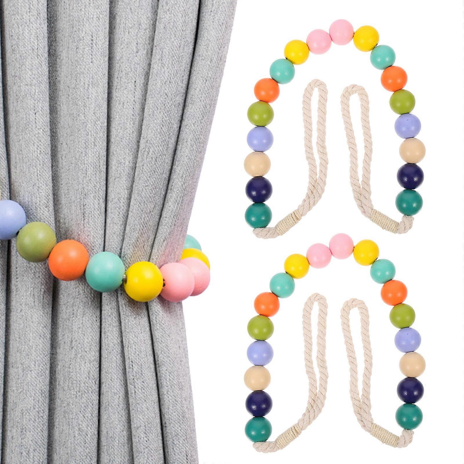 2 Pcs Wooden Bead Curtain Tie Bedroom Window Shades Blinds for Curtains Garters