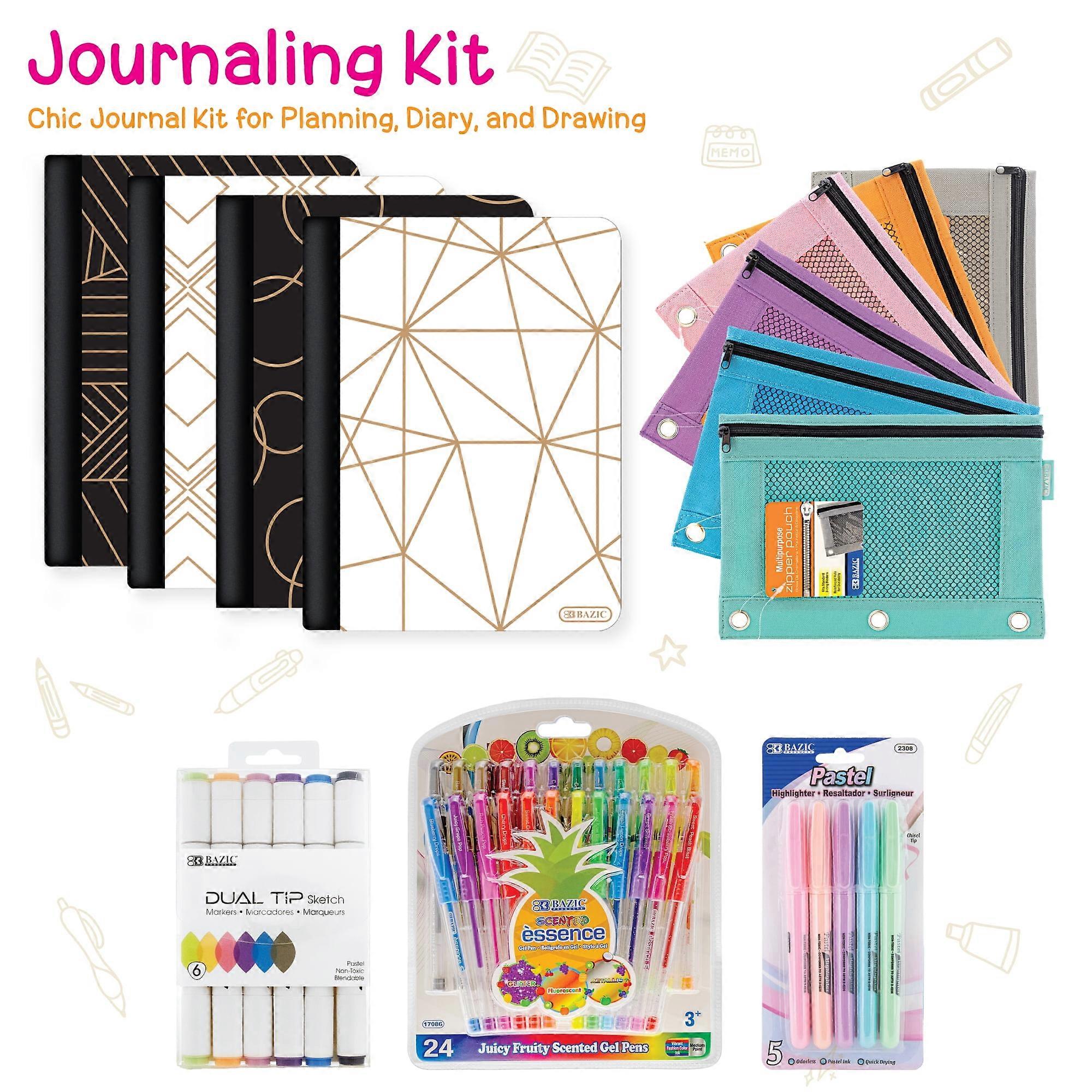 BAZIC Fashion Journaling Kit Set, Include Notebooks, Markers, Highlighters, Gel Pens, Pencil Pouches