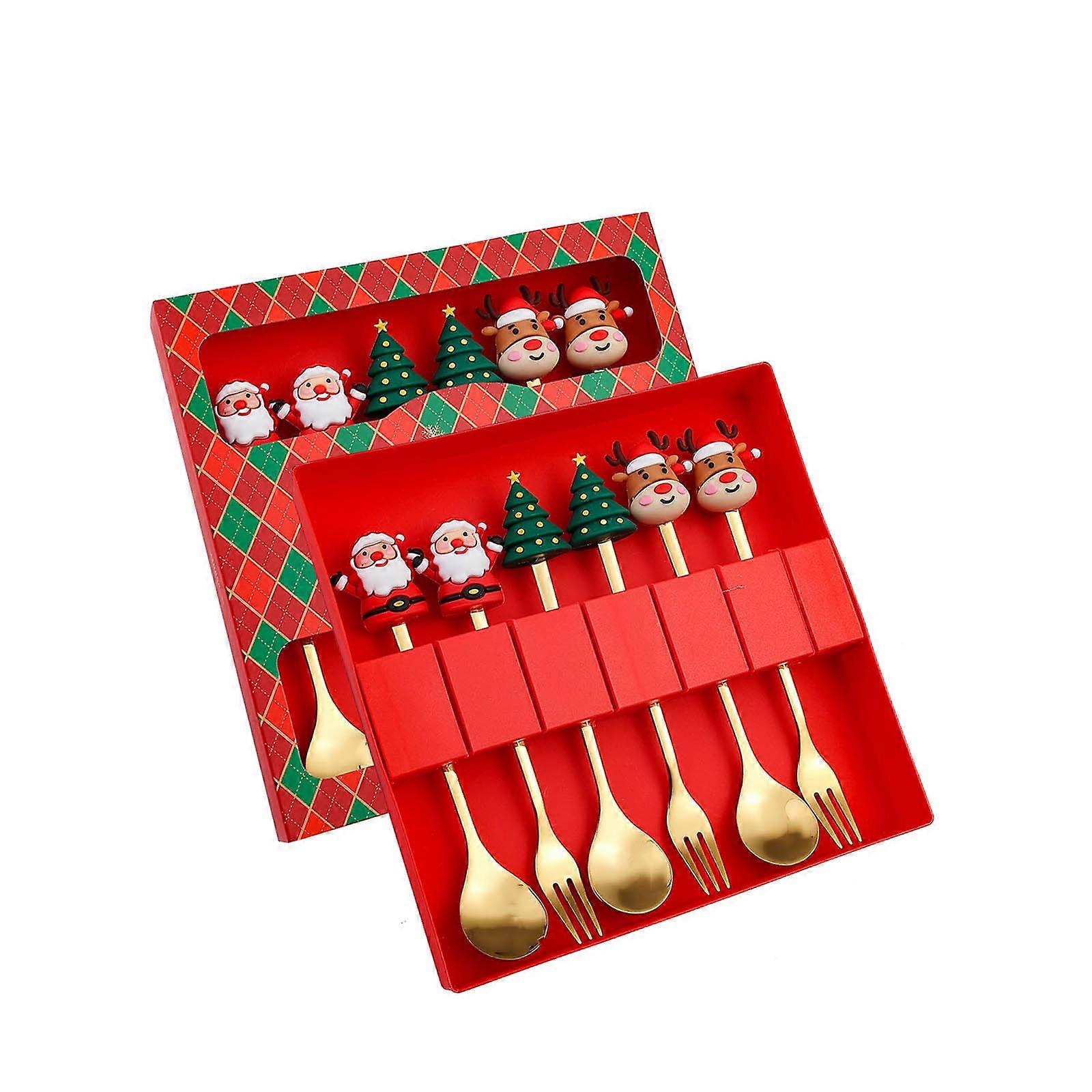 FloHua 6-Pc Christmas Spoon Set, Stainless Steel Dessert Forks & Cute Doll Gift, Indoor Decor Compatible with Holiday Tableware