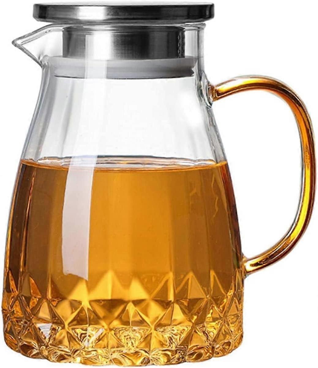 1400mL Glass Water Jug with Stainless Steel Lid, Heat Resistant Pitcher for Hot or Cold Beverages, Ice Tea Carafe [Energy Class A]