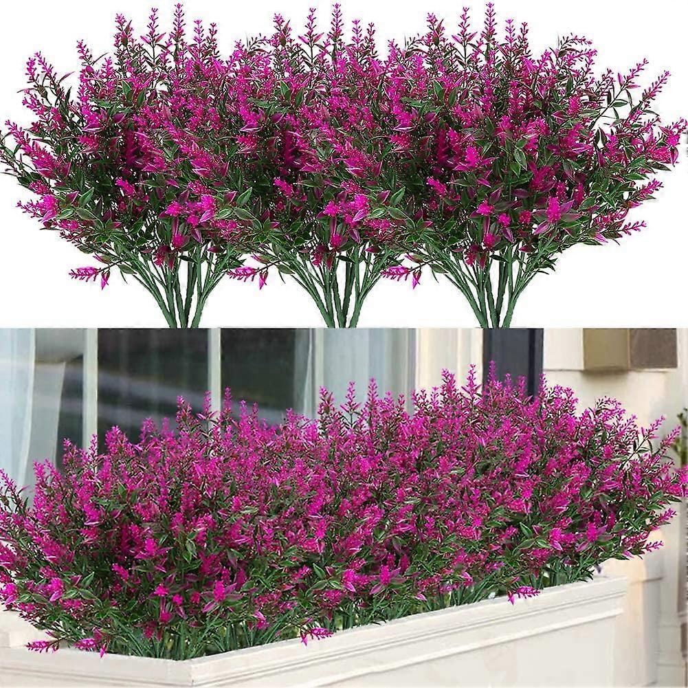 Zukuco 16 Bundles Outdoor Artificial Lavender Fake Flowers UV Resistant Shrubs, Faux Plastic Greenery for Indoor Outside decoration (Fuchsia)