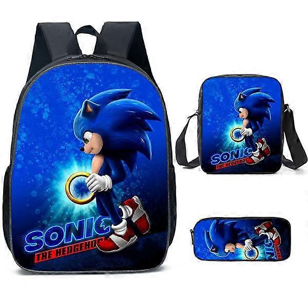 SONIC backpack Sonic elementary school backpack 3-piece anime cartoon backpack shoulder bag pencil bag Style 8 three-piece