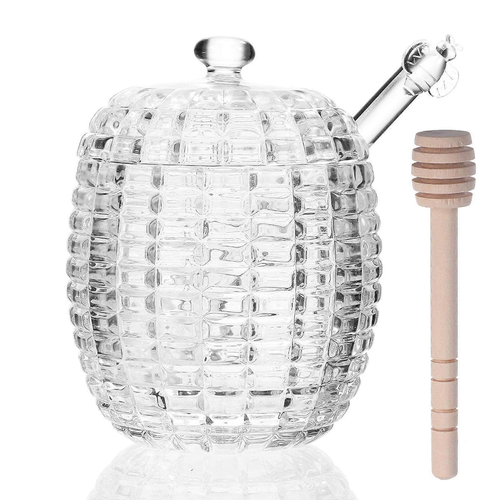 1 Set Honey Jar Clear Glass Honey Jar Kitchen Storage Jar Crystal Honey Pot with Dipper and Lid