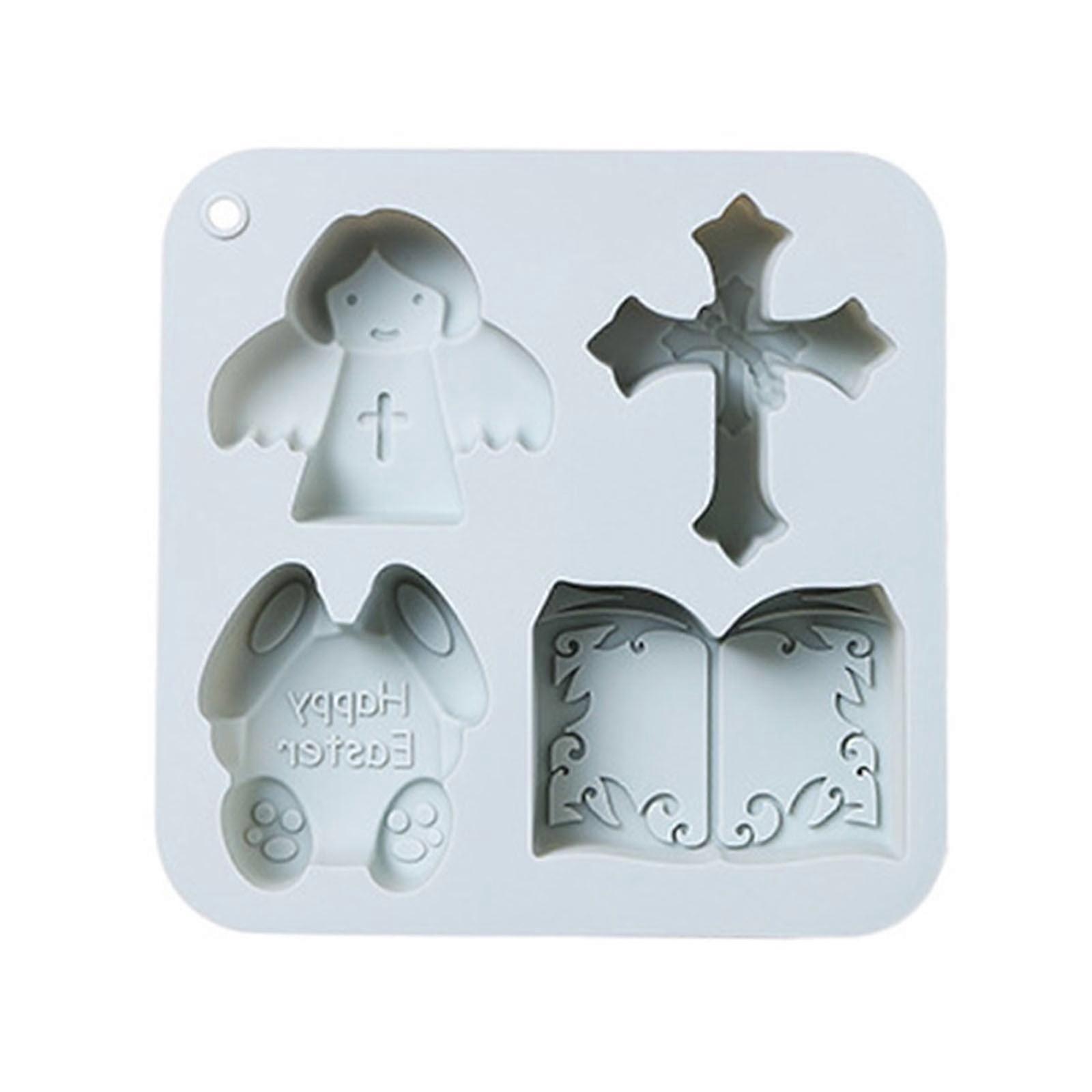 Herrnalise 3D Easter Bunny Angel Cross Silicone Mold 6-Cavity Non-Stick Chocolate Candy Cupcake Mold fondant candy molds