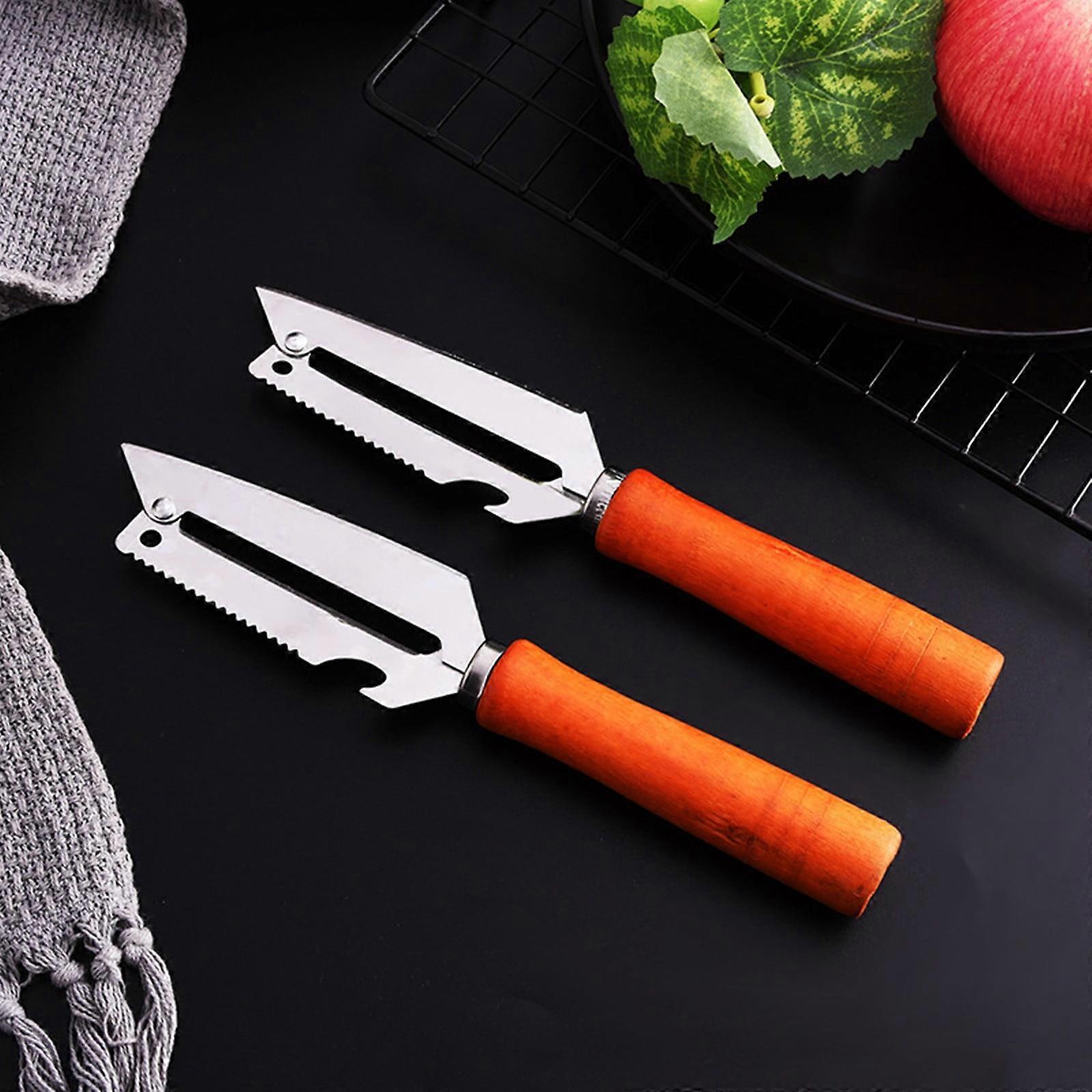 Xubond Kitchen Essentials, Stainless Fruit Household Multifunctional Peeler Kitchen Gadget Wooden Handle Planer Vegetable Peeler, Yellow, Peeler