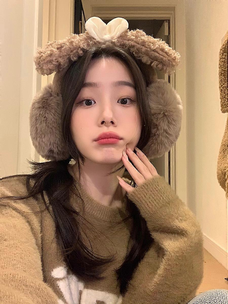 Pink Bow Rabbit Ear Earmuffs 2025 New Popular Cute Romantic Ear Bag Winter Warm Soft Fluffy Plcomh Ear Muffs for Girlfriend Gift
