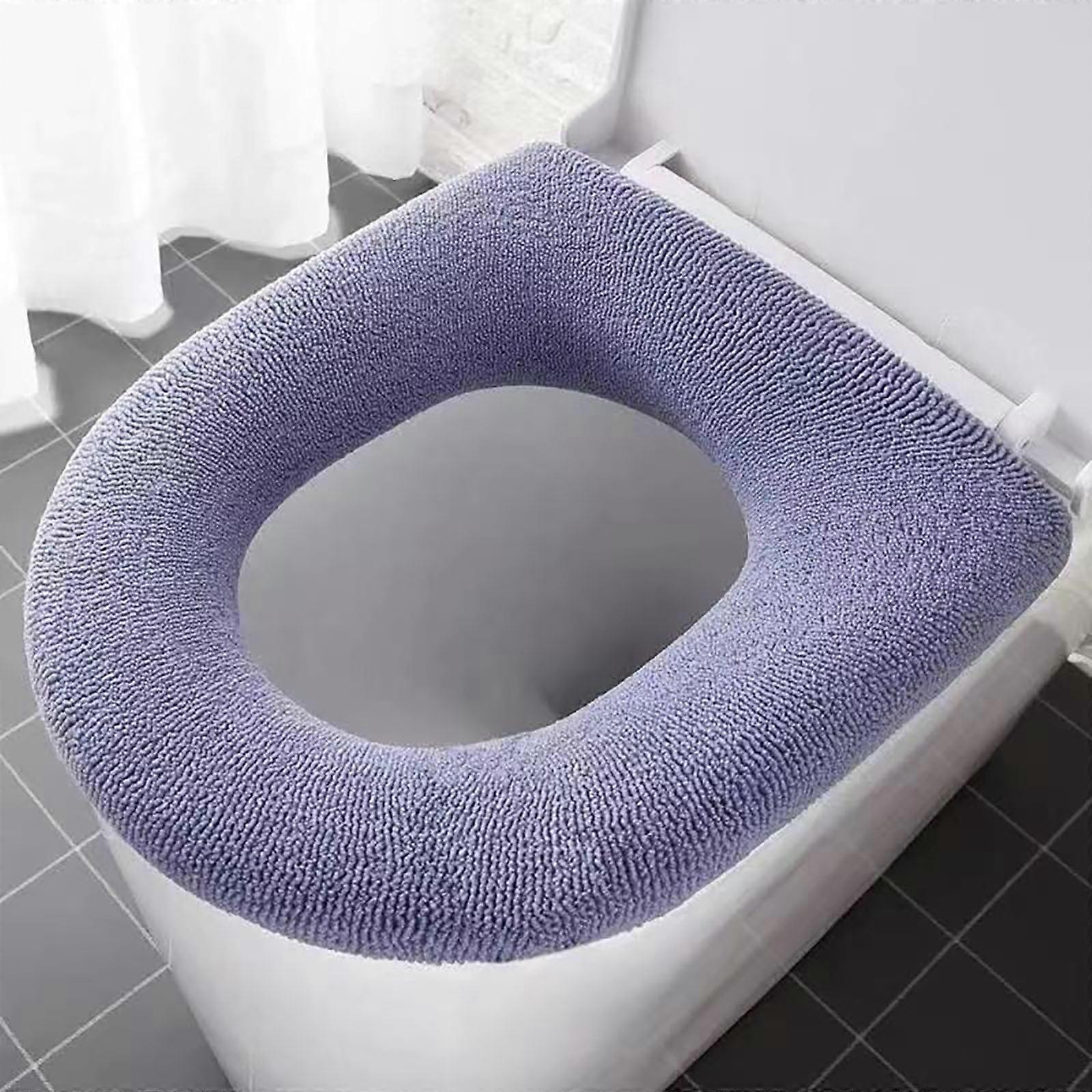 Thickened Knitted Toilet Seat Cushion Compatible with Elongated Toilet Cover, Washable Warm Mat for Household Winter Use