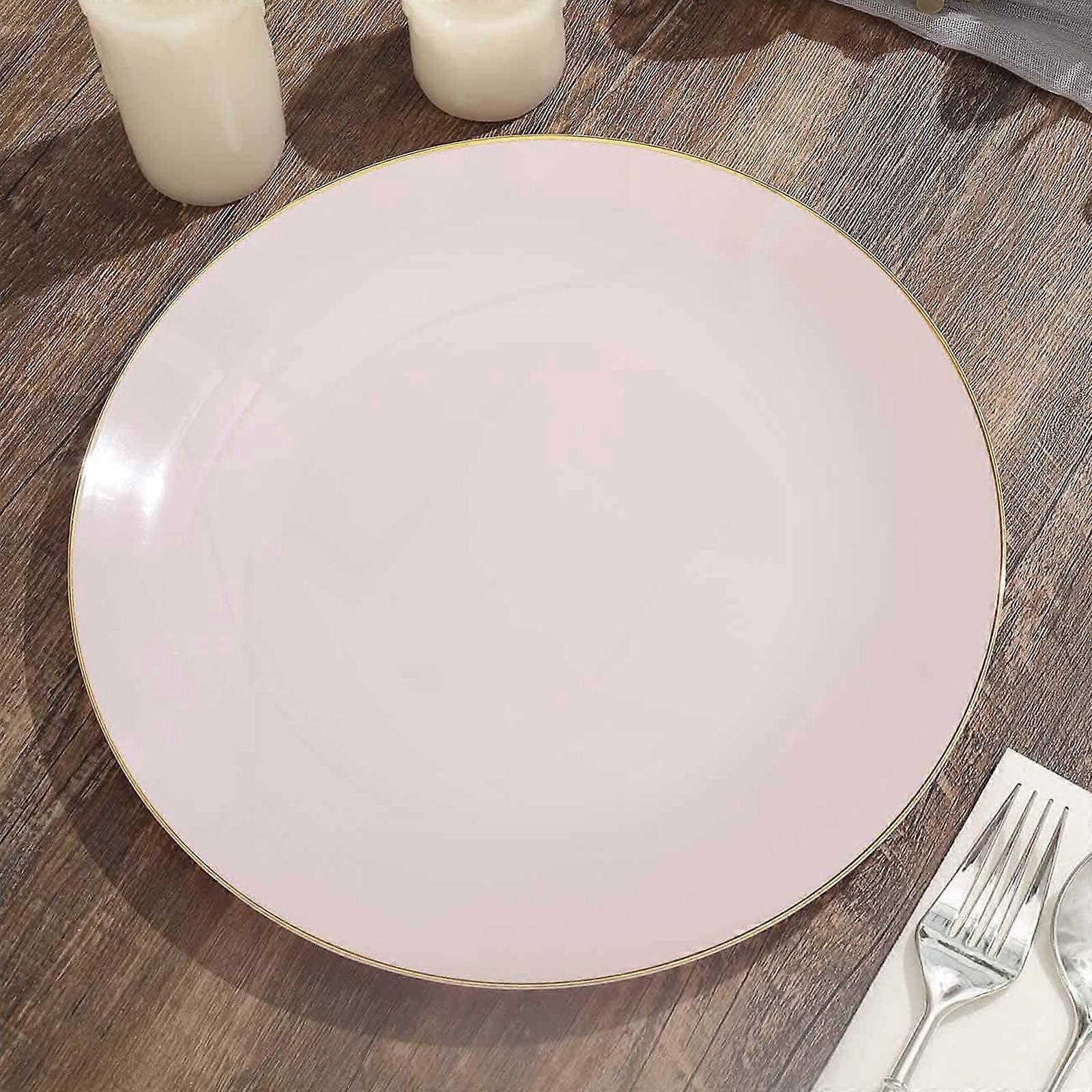 Efavormart 10 Pack | 10" Glossy Blush Rose Gold Round Plastic Dinner Plates With Gold Rim, Disposable Party Plates