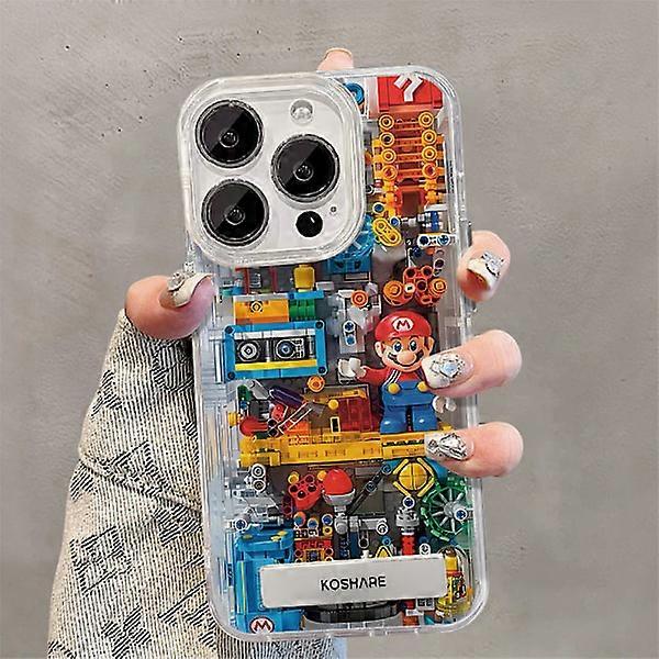 2024 New Aesthetic Phone Case compatible with iPhone, Mario Building Blocks Design Soft TPU Case + Stand for iPhone 13 Pro