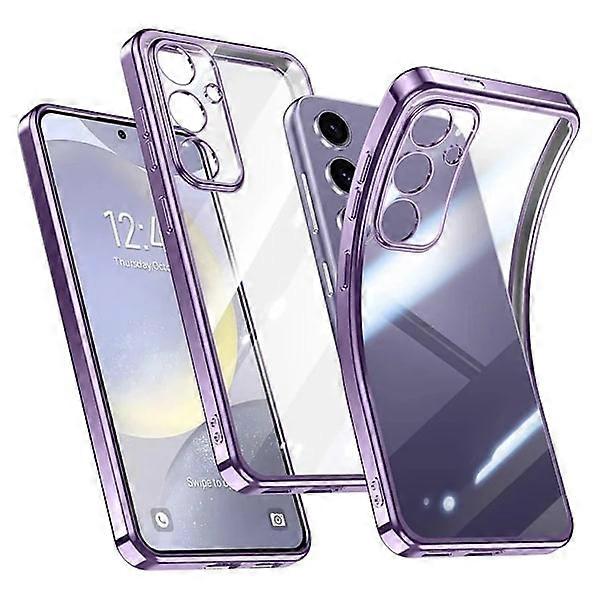 Luxury Glitter Plating Silicone Case compatible with Samsung Galaxy S25 S24 S23 FE Plus Ultra, Clear Shockproof Back Cover, Purple