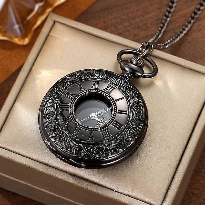 Vintage British style quartz pocket watch, charming black neutral fashion Roman digital quartz steampunk pocket watch, women's and men's nec