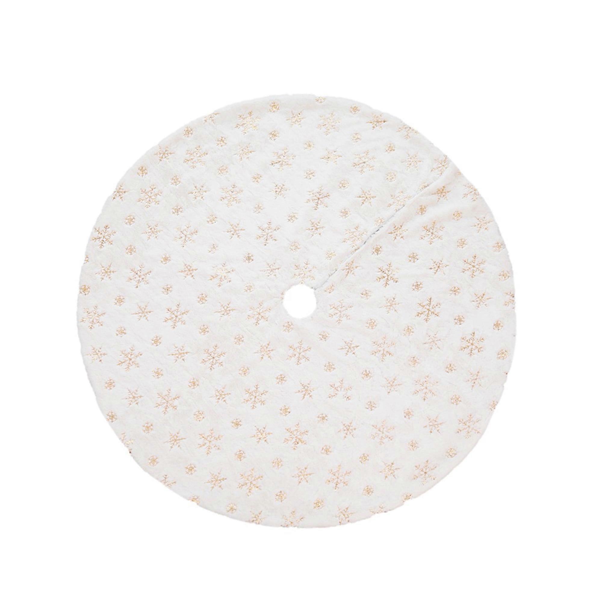 35" Christmas Tree Skirt, Snowy White Faux Fur with Gold Sequin Snowflakes, Luxury Xmas Tree Base Cover Mat for Holiday Home Decor