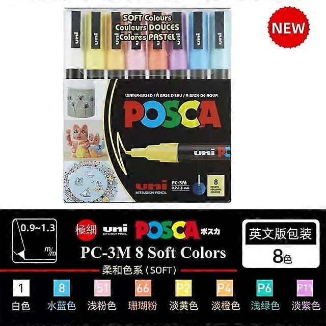 Posca Acrylic Paint Marker Pen, PC-5M/3M/1M/8K/17K 7/8/15/24/29/48 Colors Complete Full Set Painting Marking Drawing Note PC-3M 8C Soft