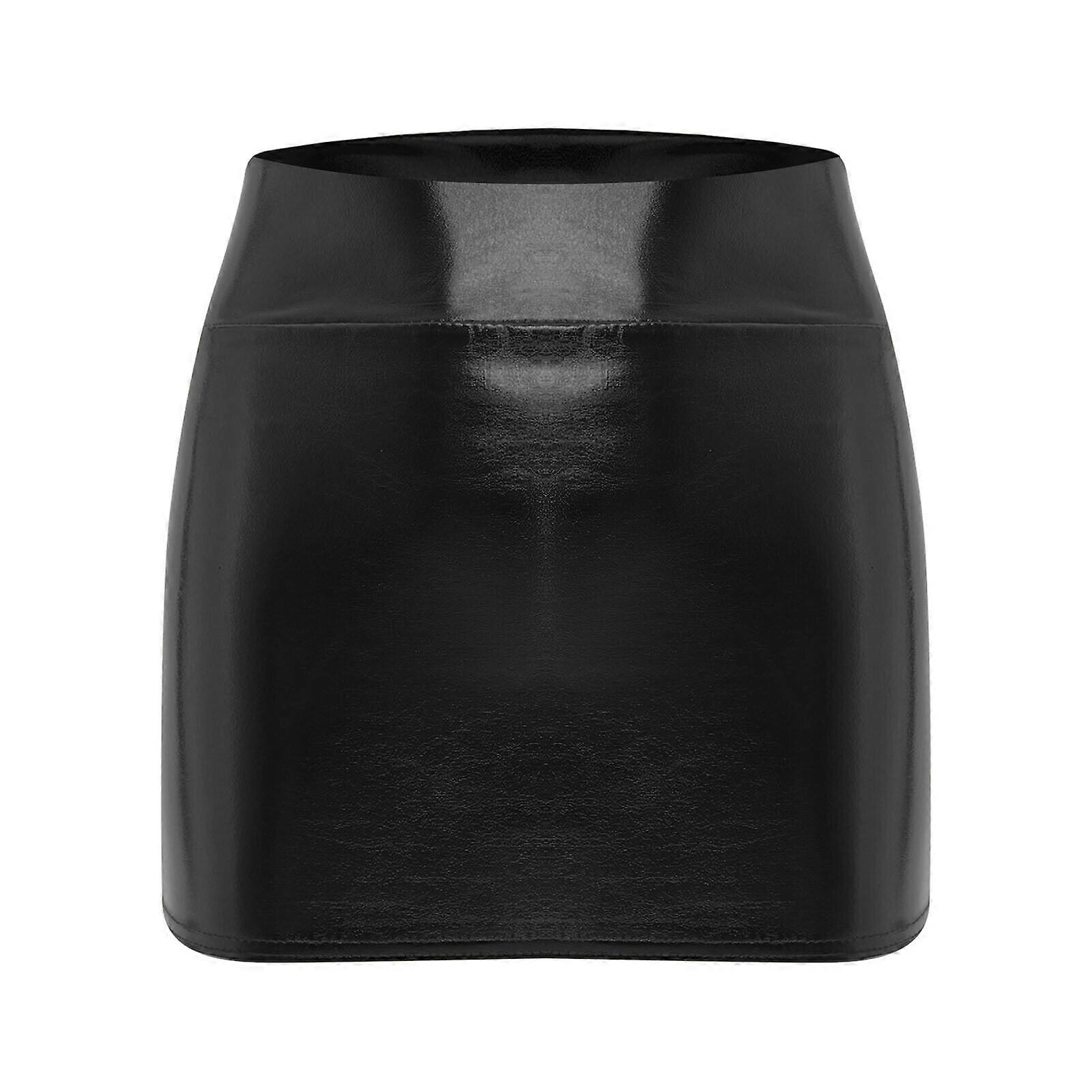 Sexy Women Metallic Leather Bodycon Mini Short Skirt Pencil Party Dress Clubwear