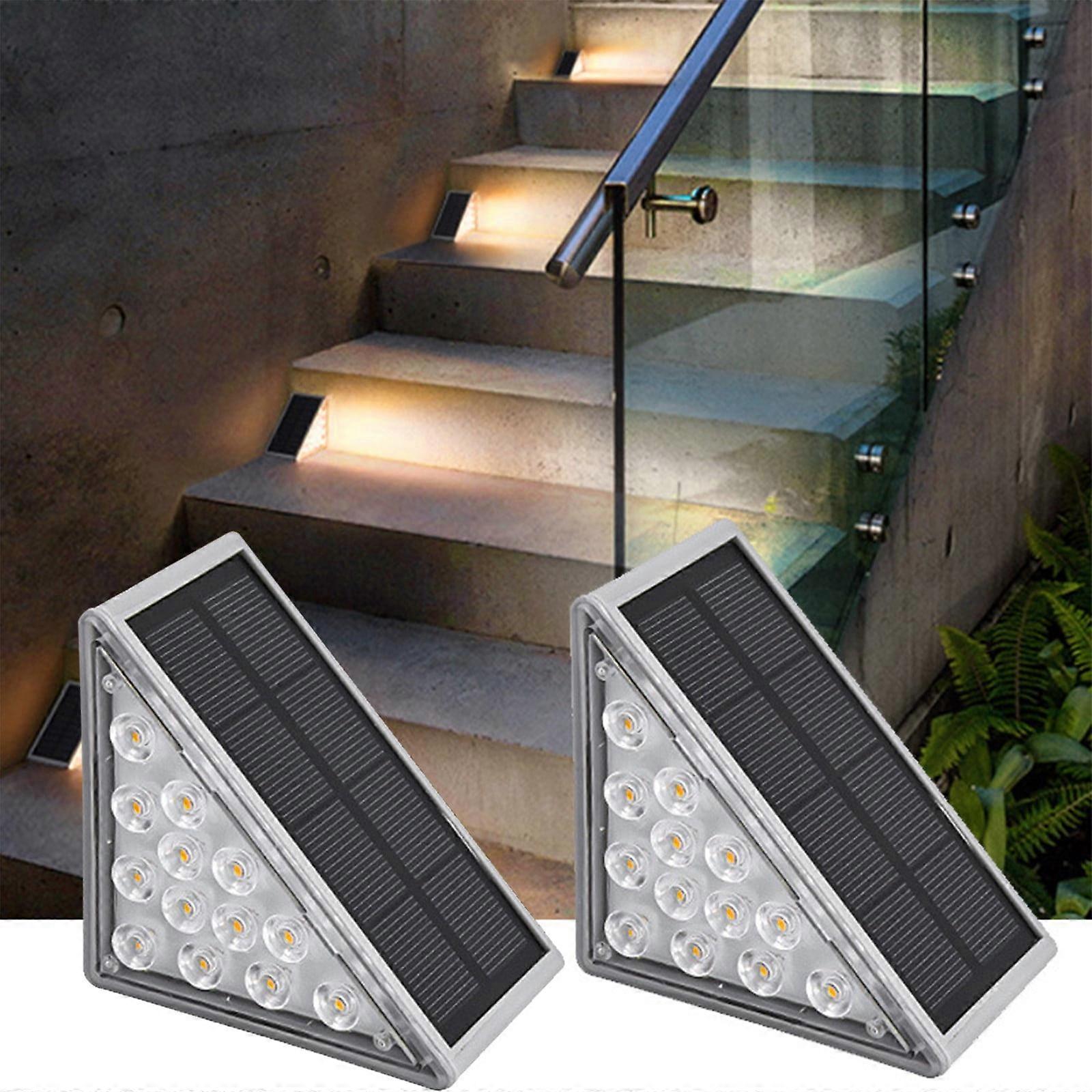 VALSEEL Solar Step Lights, 2 Pack Warm White Triangle Outdoor Stair Lights, IP67 Waterproof, Auto On/Off for Patio Yard Driveway