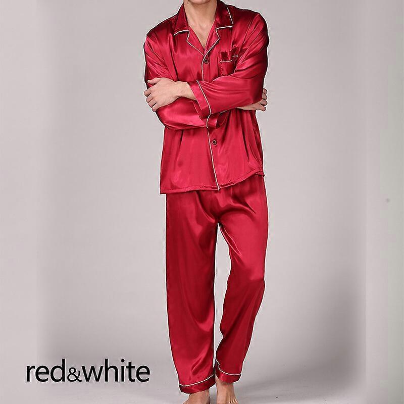 Mens Pajama Set Faux Silk Sleepwear Soft Cozy Satin Nightwear Long Sleeve Home