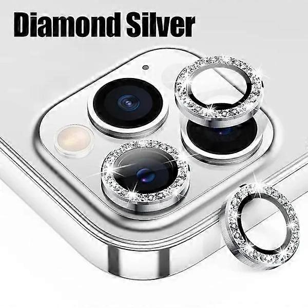 3pcs Glitter Camera Lens Protector Compatible with iPhone 15 14 13 11 Pro Max Plus, Tempered Glass Flash Silver for iPhone 12 13 11 Mini
