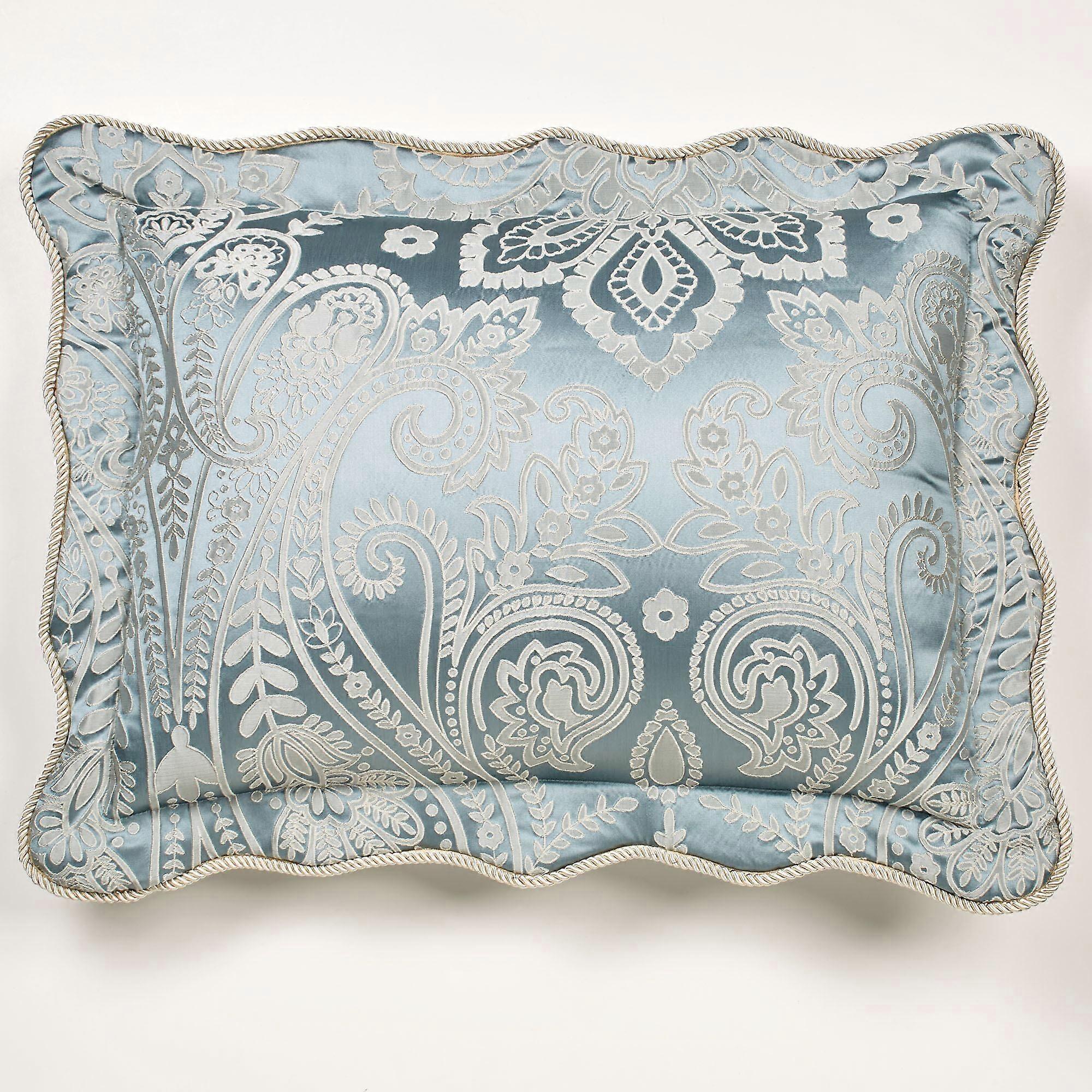 Romantic Regency Jacquard Woven Scrollwork Parisian Blue Scalloped Sham Sham Scalloped Standard